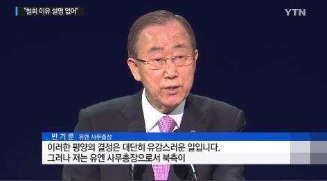 반 총장은 “북측은 갑작스러운 철회 이유에 대해 아무런 설명이 없었다”면서 “이러한 평양의 결정은 대단히 유감스럽다”고 지적했다.