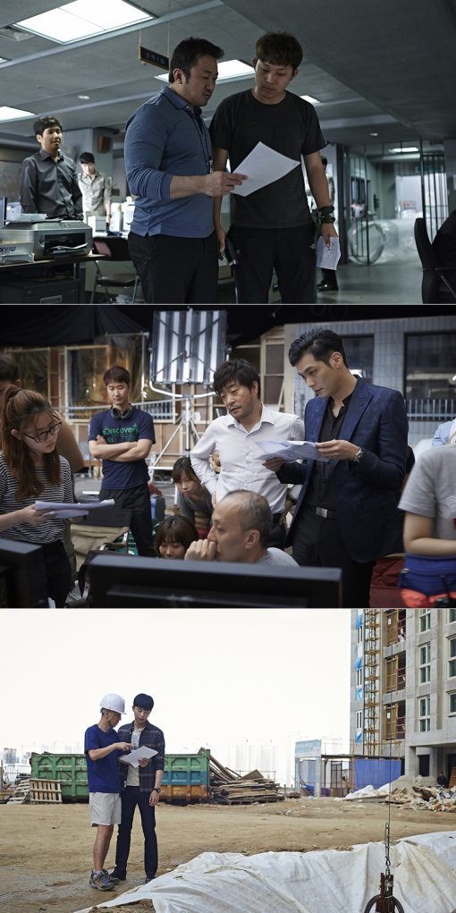 배급사 CJ엔터테인먼트는 22일 손현주 마동석 최다니엘 그리고 박서준의 촬영장 뒷 모습을 확인할 수 있는 스틸을 선보였다.