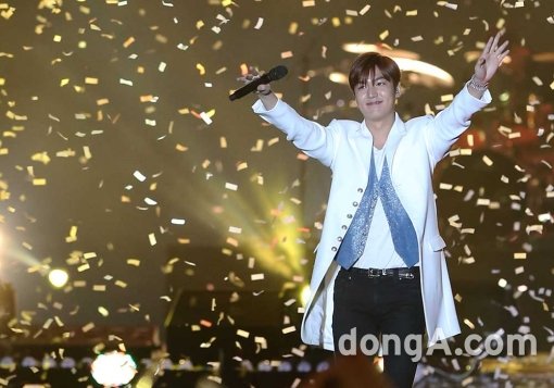 배우 이민호가 22일 오후 서울 잠실종합운동장 올림픽주경기장에서 열린 롯데면세점 창립 35주년 기념 패밀리 페스티벌에 참석해 해외 팬들에게 인사를 하고 있다.