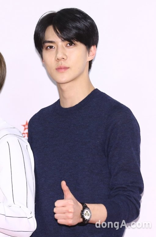 엑소의 멤버 세훈이 23일 오후 서울시 마포구 상암월드컵경기장에서 열린 '사랑한다 대한민국 2015 드림콘서트'에 참석해 포토타임을 하고 있다.