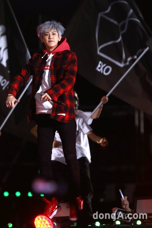 엑소의 멤버 찬열이 23일 오후 서울시 마포구 상암월드컵경기장에서 열린 '사랑한다 대한민국 2015 드림콘서트'에서 멋진 공연을 하고 있다.