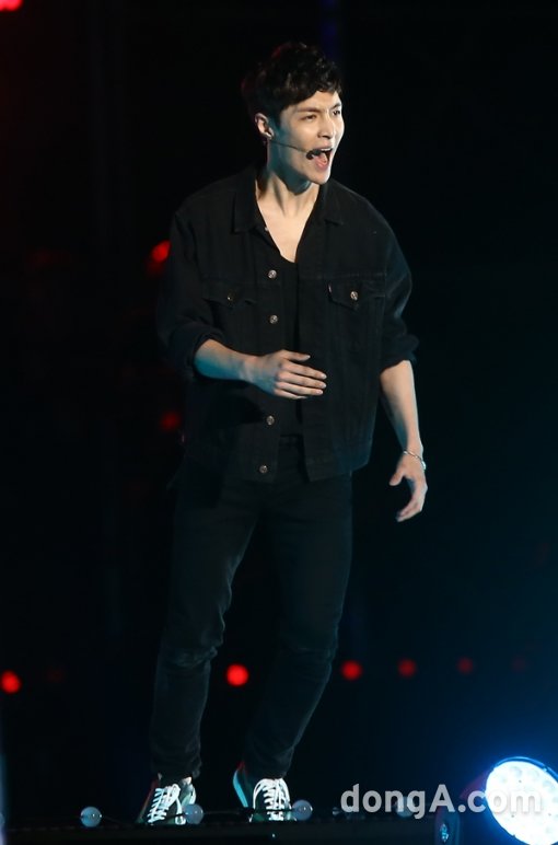 엑소의 멤버 레이가 23일 오후 서울시 마포구 상암월드컵경기장에서 열린 '사랑한다 대한민국 2015 드림콘서트'에서 멋진 공연을 하고 있다.