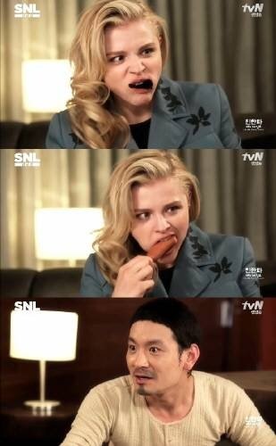 한국을 방문한 할리우드 배우 클로이 모레츠가 SNL 코리아에서 몸을 사리지 않고 망가졌다.