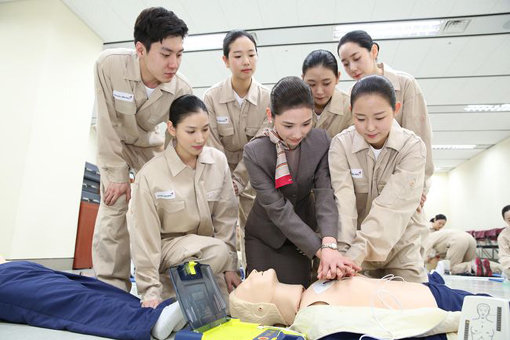 아시아나항공이 안전기본교육을 강화하고 있다. 아시아나항공 캐빈서비스훈련팀은 최근 서울 오쇠동 아시아나타운 교육훈련동에서 신입 캐빈승무원 26명을 대상으로 항공기 사고 대응 안전훈련을 실시했다. 이날 교육에서는 심폐소생술, 자동심실제세동기(AED) 사용법 등 기내환자 발생 상황의 응급처치에 대해 실습했다.