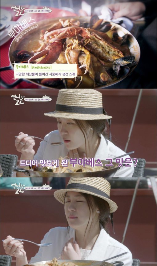 이날 방송에서는 하지원이 남프랑스에 가면 꼭 먹어보겠다고 다짐했던 부야베스를 시식할 계획이다. 부야베스는 생선, 새우, 가재 등 다양한 해산물이 들어간 지중해식 생선 스튜. 하지원은 직접 검색해 찾은 현지 식당에 전화를 해 미리 식사 예약을 할 정도로 남다른 열정을 드러냈다. 하지원과 전유경은 요리가 등장함과 동시에 감탄사를 연발, 식재료 하나하나의 맛을 음미하며 무아지경에 빠졌다는 제작진의 전언.