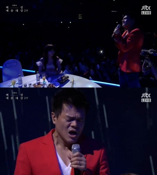 가수 박진영이 ‘백상예술대상’2부 오프닝 무대에 오른 가운데 깜짝 퍼포먼스를 선보였다.