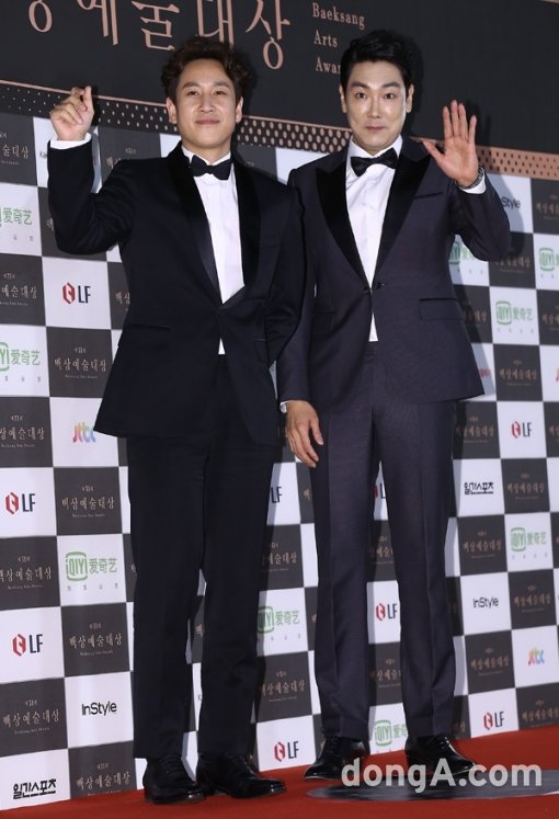 이선균(왼쪽), 조진웅이 26일 오후 서울시 동대문구 경희대학교 평화의전당에서 열린 ‘제51회 백상예술대상’에 참석해 포토타임을 하고 있다.