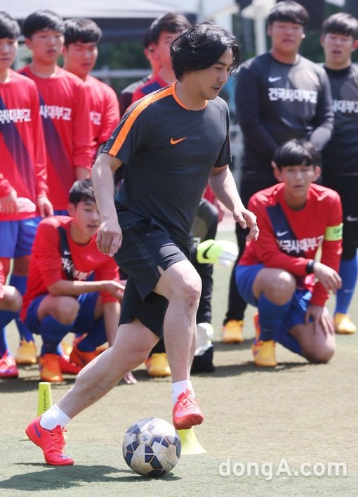 이날, 연예인축구단 ’NIKE F.C’과 건대부고 학생팀과 11대 11축구 경기를 펼쳤다.