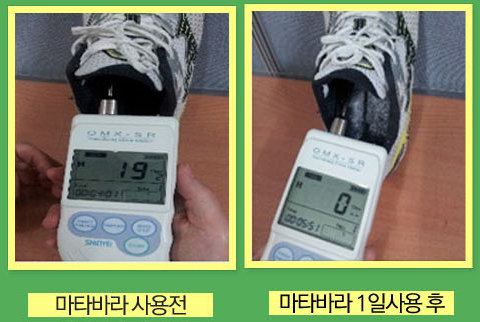 발냄새 주범인 신발속 암모니아 가스 냄새를 100% 잡아주는 신발 전용 탈취가루가 등장했다. 수입제품도 완전히 잡아내지 못한 일을 ‘마타바라’란 국산 제품이 해냈다. 마타바라는 발바닥의 각질, 땀샘 분비물, 먼지를 자양분으로 신발 속에 증식하는 126가지 세균을 박멸해 사용 즉시 신발 냄새를 완전히 제거한다. 한번 뿌려주기만 하면 효과가 오래도록 지속돼 며칠간 냄새 걱정을 하지 않아도 된다. 그래서 붙은 별명이 ‘발냄새 킬러’다.