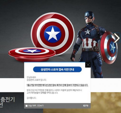 ‘갤럭시S6 아이언맨’이 판매되는 삼성전자 스토어에 접속자가 몰려 접속이 지연되고 있다.