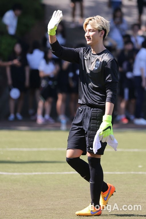 연예인축구단 ’NIKE F.C’의 노지훈이 27일 오후 서울 광진구 건국대학교 사범대학 부속고등학교애서 열린 '나이키풋볼 스쿨 챌린지 오프닝 행사’에 참석해 인사를 하고 있다.