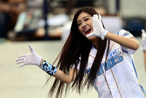 27일 창원 마산야구장에서 ‘2015 타이어뱅크 KBO리그’ NC 다이노스와 두산 베어스의 경기가 열렸다. NC 치어리더 김연정이 화려한 공연을 선보이고 있다.