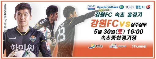 프로축구 K리그 챌린지 강원FC가 오는 30일(토) 오후 4시 속초종합경기장에서 상주상무를 상대로 ‘현대오일뱅크 K리그 챌린지 2015’ 12R 홈경기를 치른다.