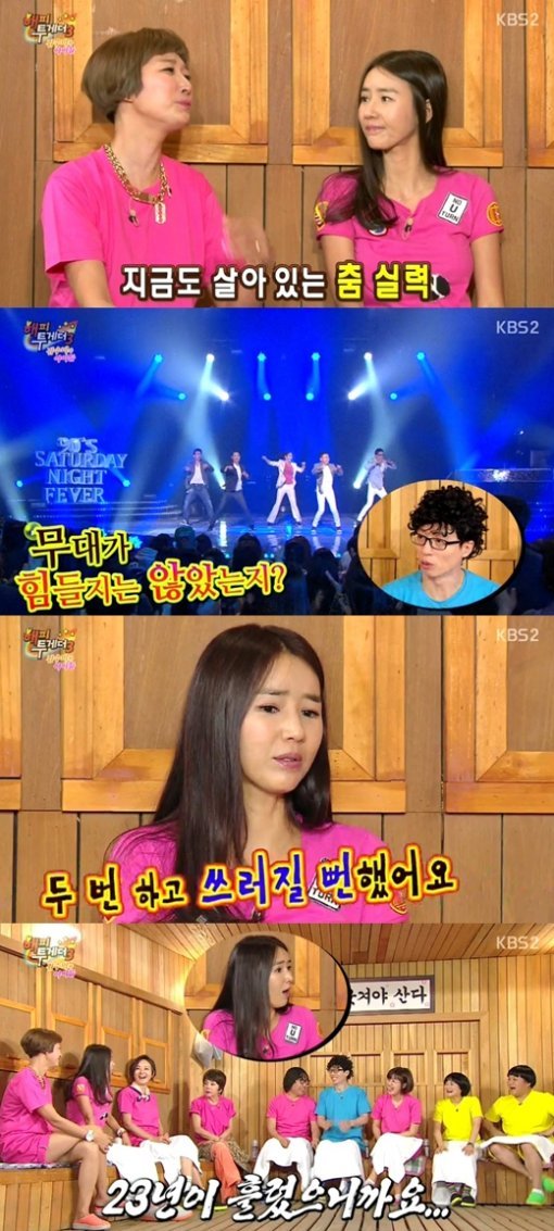 ‘해피투게더3’에서 배우 윤현숙이 23년 전 그룹 잼 활동 시절로 돌아갔다.