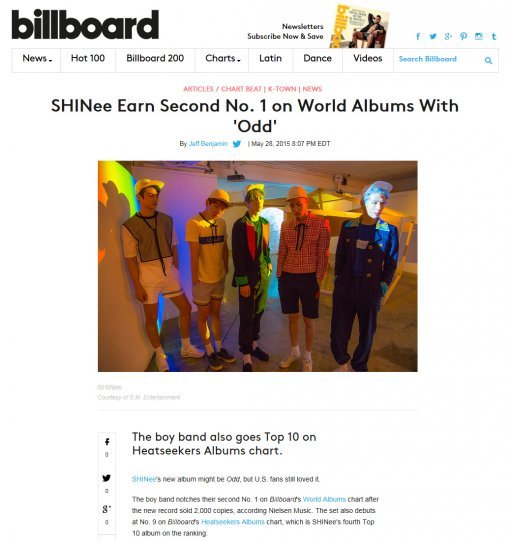 특히 빌보드는 “샤이니의 새 앨범 ‘Odd’는 빌보드 월드 앨범 차트 1위, 히트시커스 차트 9위에 등극했다. 이는 샤이니가 2013년 발표한 ‘Why So Serious? - The Misconceptions of Me’에 이어 두 번째 1위다”라고 상세히 설명해 해외 음악시장에서도 확실히 자리매김한 샤이니의 위상을 입증시켜줬다.