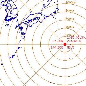 30일 오후 8시24분께 일본 도쿄도 남부의 북태평양에 있는 오가사와라(小笠原)제도 인근에서 강한 지진이 발생했다.