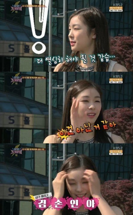 김연아는 지난 31일 방송된 KBS 2TV ‘출발드림팀 시즌2’ 2018 평창동계올림픽 성공기원 특집에 특별 출연했다.