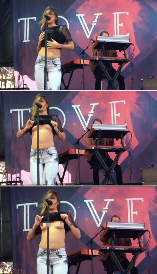 스웨덴 출신 싱어송라이터 토브 로는 지난 주말 열린 '보스턴 콜링 스프링 2015(Boston callin spring 2015)' 공연 도중 상의를 들어 올렸고 급기야 가슴까지 노출했다.