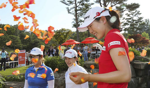 한편, 공동 3위(10언더파 206타)에 오른 조윤지(24·하이원리조트)는 8홀 연속 버디 신기록을 세웠다. KLPGA투어 역대 연속버디 기록은 김미현(2000년 파라다이스여자오픈), 신지애(2007년 비씨카드클래식) 등 8명이 작성한 6홀 연속 버디다. 조윤지는 이날만 버디 9개(보기1개)를 기록했다. KLPGA투어 18홀 최다 버디는 10개(강수연 등 7명)다. 조윤지는 “퍼트가 너무 잘 됐다. 마치 자석에 붙인 것처럼 다 들어갔다”며 기뻐했다. 배선우(21·삼천리)와 정희원(24)은 조윤지와 함께 공동 3위, 올 시즌 국내 대회에 처음 출전한 김하늘(27·하이트진로)은 공동 6위(9언더파 207타)로 경기를 끝냈다.