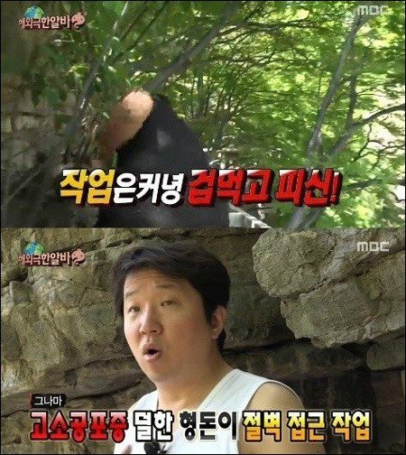 허난성 왕우산에 도착한 정형돈과 하하는 자신들의 극한직업이 가마꾼이 아닌 절벽에 길을 뚫는 잔도공 일임을 알게 됐다. 이들이 작업해야할 곳은 해발 1700m의 낭떠러지. 결국 두 사람은 까마득한 아래를 보자 발도 제대로 떼지 못하며 공포에 떨었다.