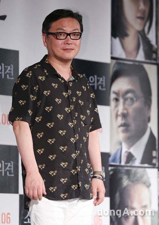 배우 김의성이 2일 오전 서울 동대문 한 멀티플렉스에서 열린 영화 ‘소수의견’ 제작보고회에 참석해 포토타임을 하고 있다.