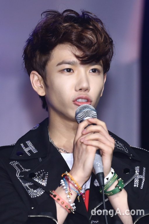 그룹 하이포의 멤버 백명한이 3일 오후 서울시 마포구 롤링홀에서 열린 새 싱글앨범 ‘BABY BOY’ 쇼케이스에 참석해 질의응답을 하고 있다.