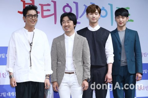 배우 김주혁(왼쪽부터), 조달환, 박서준, 서강준이 4일 오전 서울시 강남구 영화 ‘뷰티 인사이드’ 제작보고회에 참석해 포토타임을 하고 있다.