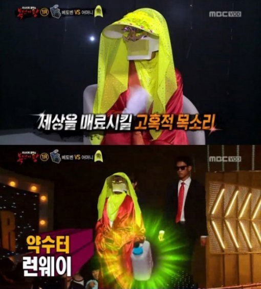 이날 ‘복면가왕’에서 어머니는 자외선이 싫다고 하셨어는 여행스케치의 ‘별이 진다네’를 열창하며 풍부한 성량과 감성을 표현해 눈길을 끌었다.