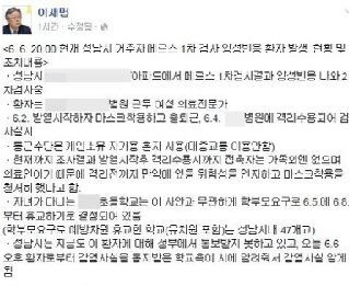 이재명 시장은 또 "자녀가 다니는 ○○초등학교는 이 사안과 무관하게 학부모 요구로 8일부터 휴교하기로 결정돼 있다"고 써 의심자의 자녀가 다니는 학교도 실명을 밝혔다.