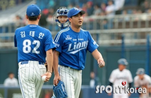 7일 오후 창원 마산야구장에서 열린 ‘2015 타이어뱅크 KBO 리그 프로야구’ NC 다이노스 대 삼성 라이온즈 경기 4회말 6실점을 허용한 삼성 선발 장원삼이 강판되고 있다.