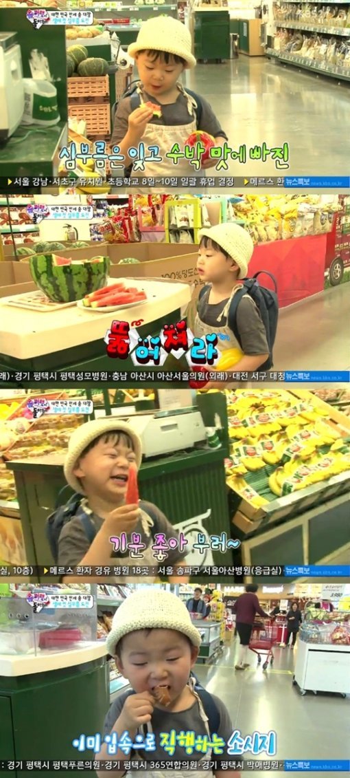 그러나 심부름 도중 민국이와 만세는 시식 코너 음식에 푹 빠졌다. 만세는 수박 시식코너에서 발을 떼지 못했다. 민국이 역시 열심히 미션을 수행하다가 시식코너 소시지 냄새에 발길을 돌려 웃음을 자아냈다.
