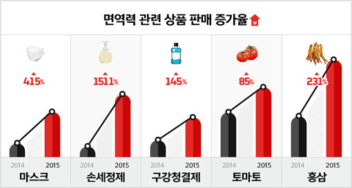 소셜커머스 위메프는 최근 토마토(85%), 홍삼제품(231%) 등의 판매량이 늘었다며 “면역력을 강화하고자 하는 고객들의 심리가 반영된 것으로 보인다”고 설명했다.