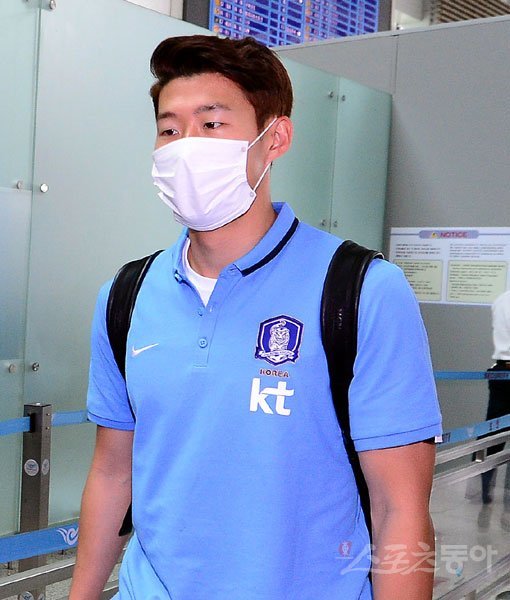 지난해 브라질월드컵의 아쉬움을 털어내겠다는 다짐을 밝힌 축구대표팀 손흥민이 8일 ‘메르스’ 탓에 마스크를 쓴 채 출국하고 있다. 인천국제공항|김종원 기자 won@donga.com