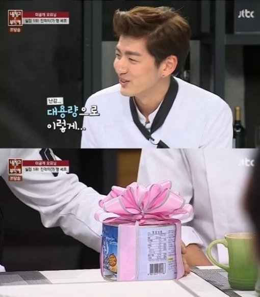 이날 방송에서 MC 정형돈은 지난 회 맹기용의 꽁치 샌드위치를 언급하며 “원빈 이나영이나 돼야 이 정도 검색어에 오르는데 맹기용이 올랐다”며 꽁치 통조림을 선물했다.