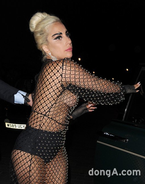 공연을 마친 가가는 상반신 누드에 전신 망사 의상으로 등장해 시선을 끌었다. 특히 가슴 중요부위만 테이프로 가린 모습으로 주위를 경악케 했다.