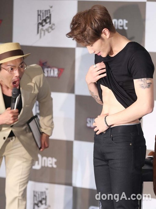 하지만 MC딩동의 권유에 김필은 그 자리에서 복근을 드러내 보였고, 선명한 왕(王)자가 새겨진 몸매를 과시해 감탄을 자아냈다.