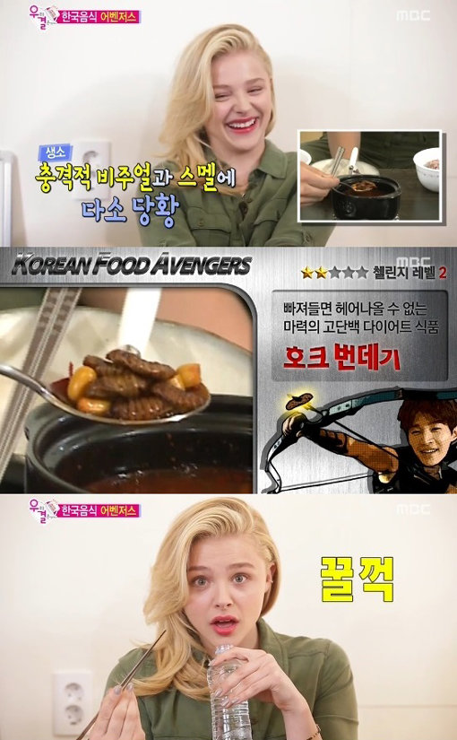 할리우드 배우 클로이 모레츠가 번데기를 시식해 화제를 모았다.