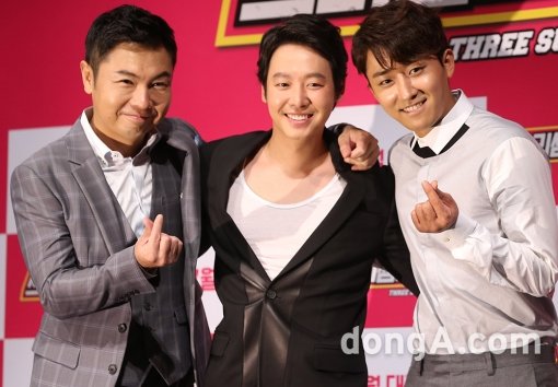 배우 임원희, 김동욱, 손호준(왼쪽부터)이 15일 오전 서울 강남구 압구정 한 멀티플렉스에서 열린 영화 '쓰리 썸머 나잇' 제작보고회에 참석해 포토타임을 하고 있다.
