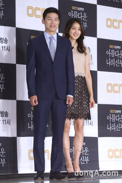 배우 김무열(왼쪽), 이시영이 15일 오후 서울시 종로구 AW컨벤션센터에서 열린 OCN ‘아름다운 나의 신부’ 제작발표회에 참석해 포토타임을 하고 있다.