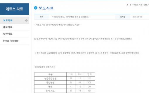 중동호흡기증후군(MERS·메르스)의 병원 내 전염이 지속적으로 증가하는 추세다. 이를 방지하는 차원에서 호흡기 질환자와 일반 환자를 분리한 ‘국민 안심 병원’명단이 총 161곳으로 늘어났다.