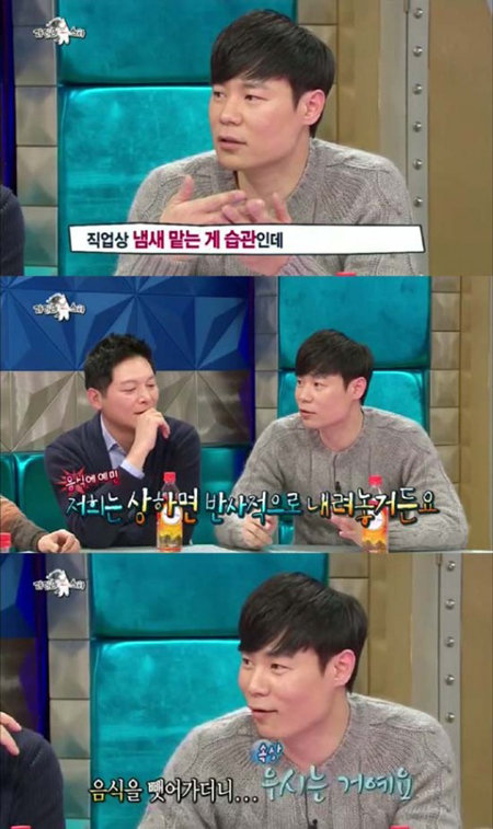 이날 방송에서 MC 김구라는 음식점을 운영하는 지인의 냄새 맡는 습관에 대해 언급했다. 이를 듣던 최현석은 “직업상 냄새를 맡는 게 습관인데 명절 때 처가집에 갔더니 장모님이 뭔가를 아꼈다 주셨다”고 입을 열었다.