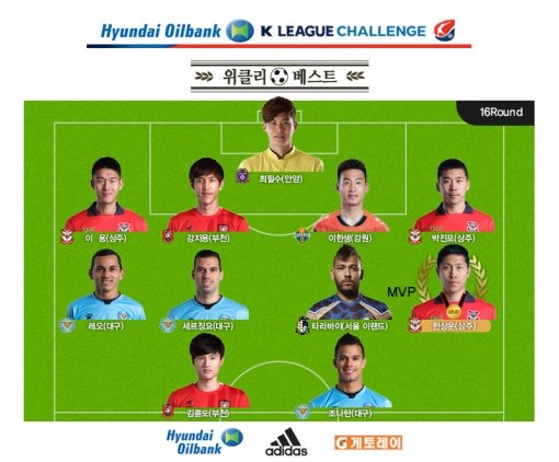 한국프로축구연맹은 16일 현대오일뱅크 K리그 챌린지 16라운드 위클리 베스트 명단을 발표했다.