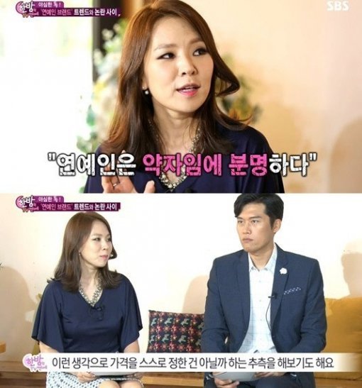이는 지난 17일 SBS '한밤의 TV연예'에서 곽정은이 장미인애 쇼핑몰 논란을 다루며 "시장 가격을 모르고 '내가 연예인이니까 이 정도는 받아야지'라는 생각으로 자신이 사용하던 물건들의 가격을 그대로 붙인 것 아닌가하는 추측을 할 수도 있다"고 발언한 데 따른 것으로 추정된다.