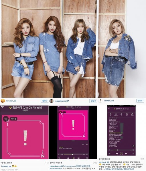 지나도 인스타그램을 통해 "마마무 음오아예 UmOhAhYeh 역시 마마무 내스타일이당"이라는 글과 함께 재생 중인 페이지를 캡쳐해 올렸다.