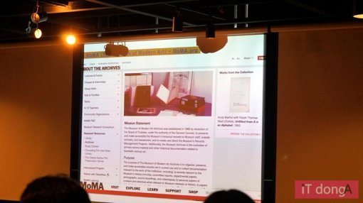 이어 정 디렉터는 예술 작품을 수용하고 체험하는 방식도 변화하고 있다고 말했다. 바로 디지털 기술에 기반한 인터랙티브(상호 작용), 가상성 등이 대표적이다. 예를 들면 예술작품을 온라인에서 감상할 수 있는 솔루션도 등장했는데, 대표적인 것이 '구글의 아트 프로젝트'다. 구글 아트 프로젝트는 구글이 제공하는 온라인 가상 서비스 미술관인데, 제품을 가까이 볼 수 없고 만지면 안 되는 기존 아날로그 방식에서 한 걸음 더 나아가, 디지털 사이버스페이스에서는 내가 줌인/줌 아웃하면서 제품을 자세하고 보다 능동적으로 관찰할 수 있도록 했다.