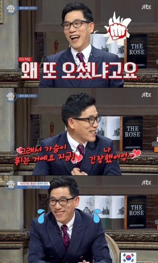 지난 22일 방송된 JTBC 예능 프로그램 ‘비정상회담’에는 5월 18일 방송에 출연했던 진중권이 다시 한 번 게스트로 출현해 전쟁과 평화라는 주제로 열띤 토론을 펼치는 모습이 전파를 탔다.