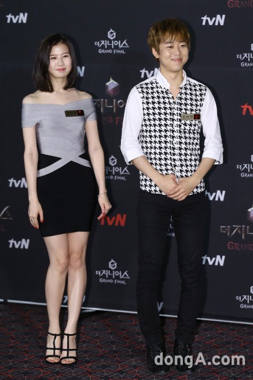 최정문(왼쪽), 오현민이 23일 오전 서울시 마포구 상암CGV에서 열린 케이블채널 tvN ‘더 지니어스: 그랜드 파이널’ (이하 더 지니어스) 제작발표회에서 포토타임을 하고 있다.