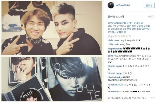 가수 세븐(최동욱)과 빅뱅의 대성이 만남의 인증샷을 공개했다.