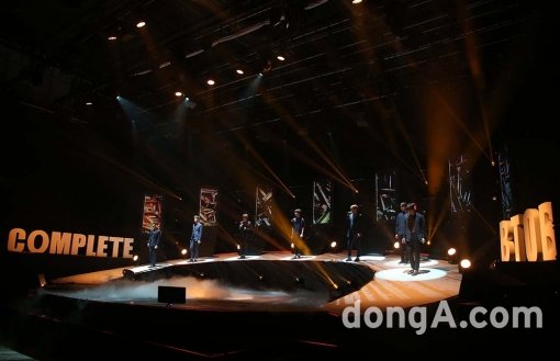 그룹 비투비(서은광, 이민혁, 이창섭, 임현식, 프니엘, 정일훈, 육성재)가 29일 오후 서울 마포구 상암동 DMS 제1스튜디오에서 열린 정규 1집 앨범 ‘컴플리트(Complete)’발매 기념 쇼케이스에서 화려한 곡을 선보이고 있다.