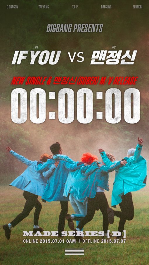 공개된 이미지에는 빅뱅 멤버들이 어깨동무를 한 채 유쾌하게 달리고 있는 모습이 담겨있다. 또 신곡 타이틀인 ‘IF YOU’와 ‘맨정신’이 명시돼있으며 ‘NEW SINGLE & 맨정신(SOBER) M/V RELEASE’라는 문구로 신곡 음원과 ‘맨정신’의 뮤직비디오가 공개됨을 알렸다.